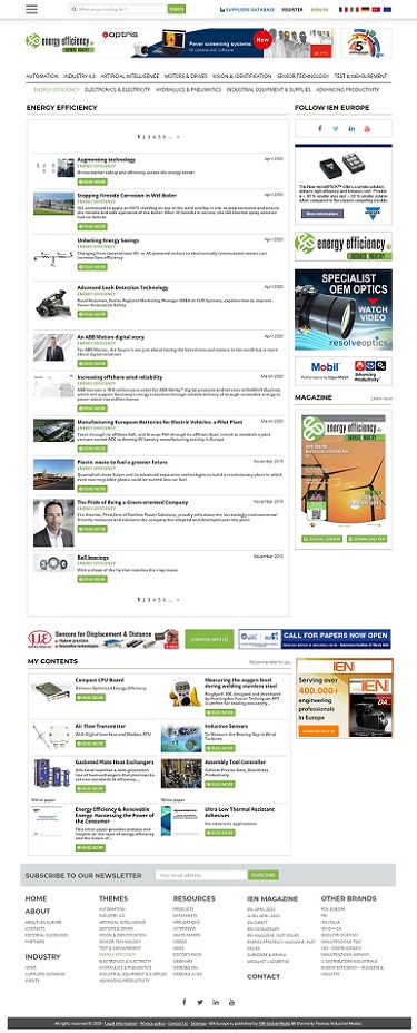 EEBI 雜誌發行於2011年,旨在提供有關工業能源效率技術和尖端產品的最新資訊。從市場、業務,到歐洲政策法規等,為讀者提供最詳細完整的介紹與研究內容,以幫助他們在公司做出正確的決策,降低成本並實現節能目標。雜誌主題包含:數字能源、能源監控系統、智慧工廠、能源儲存、再生能源,與其它有趣的創新產品新聞、應用案例和技術文章。EEBI 雜誌一年發行3期,會收錄 (夾頁) 在 IEN Europe 雜誌中一同發行。